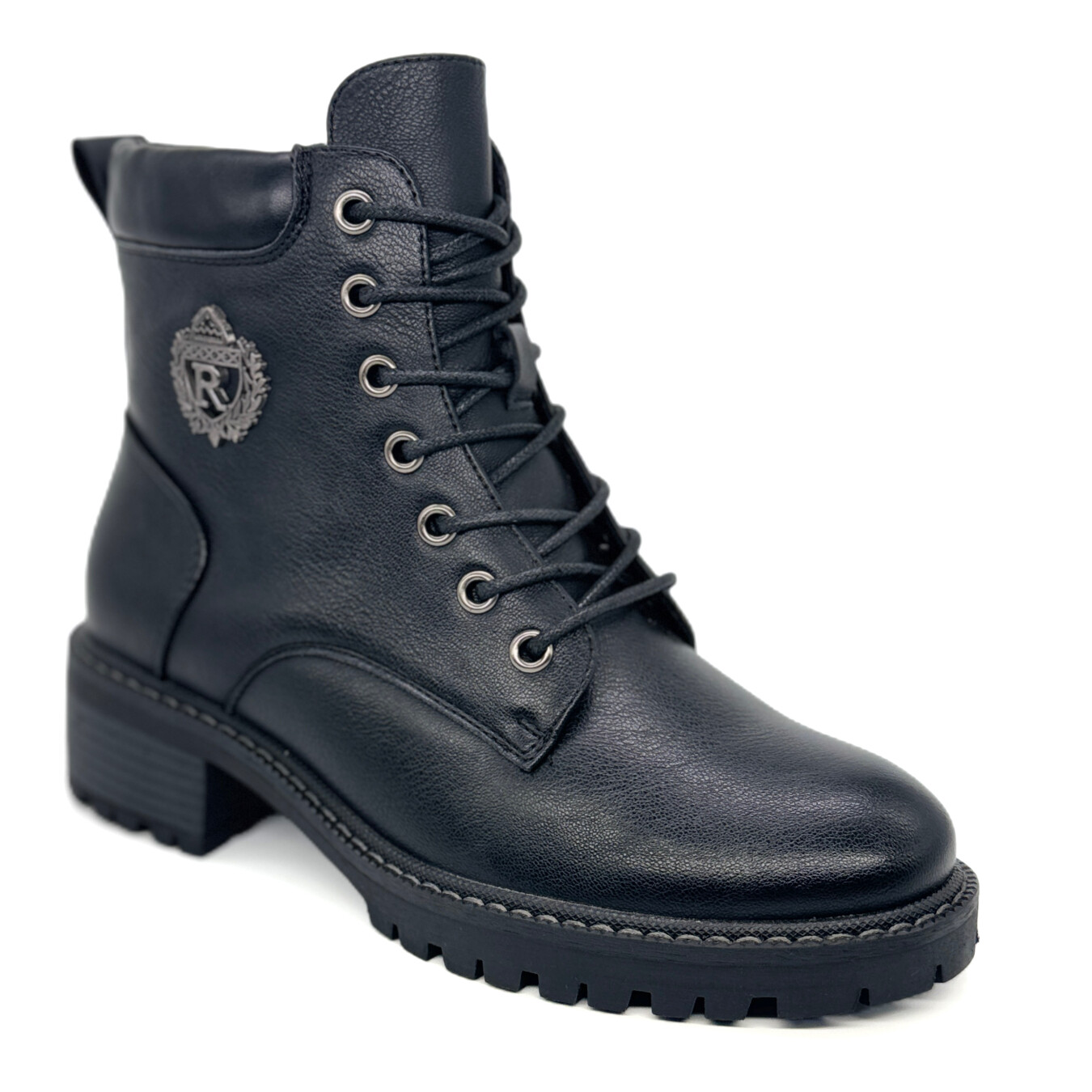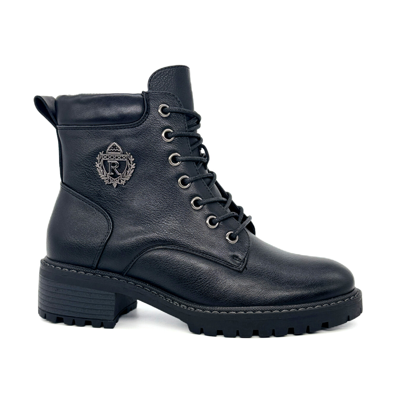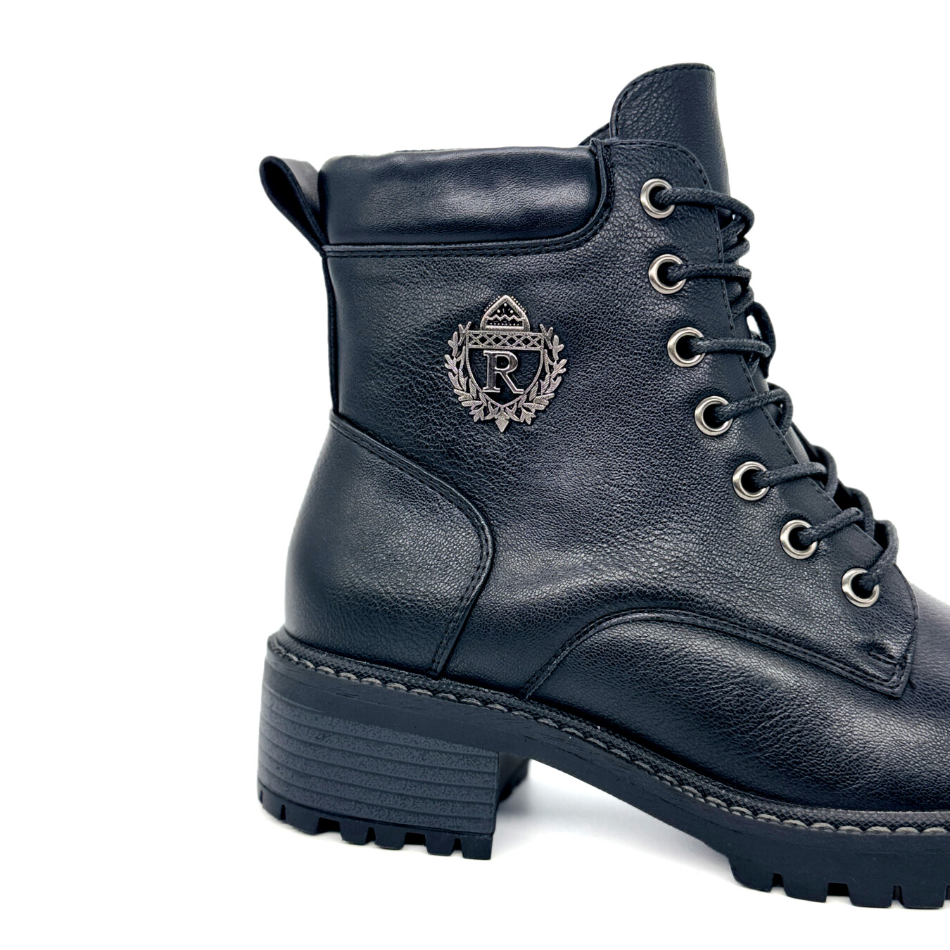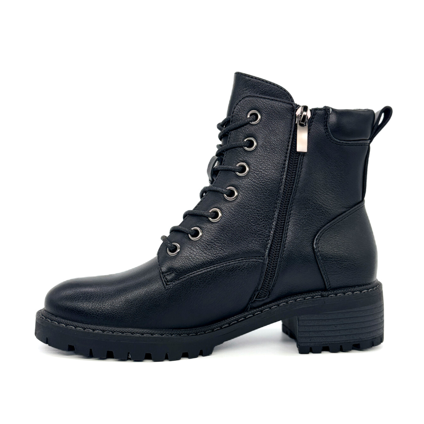 低筒系带短靴,侧边配有拉链,做工精良,外侧饰有金属装饰件。