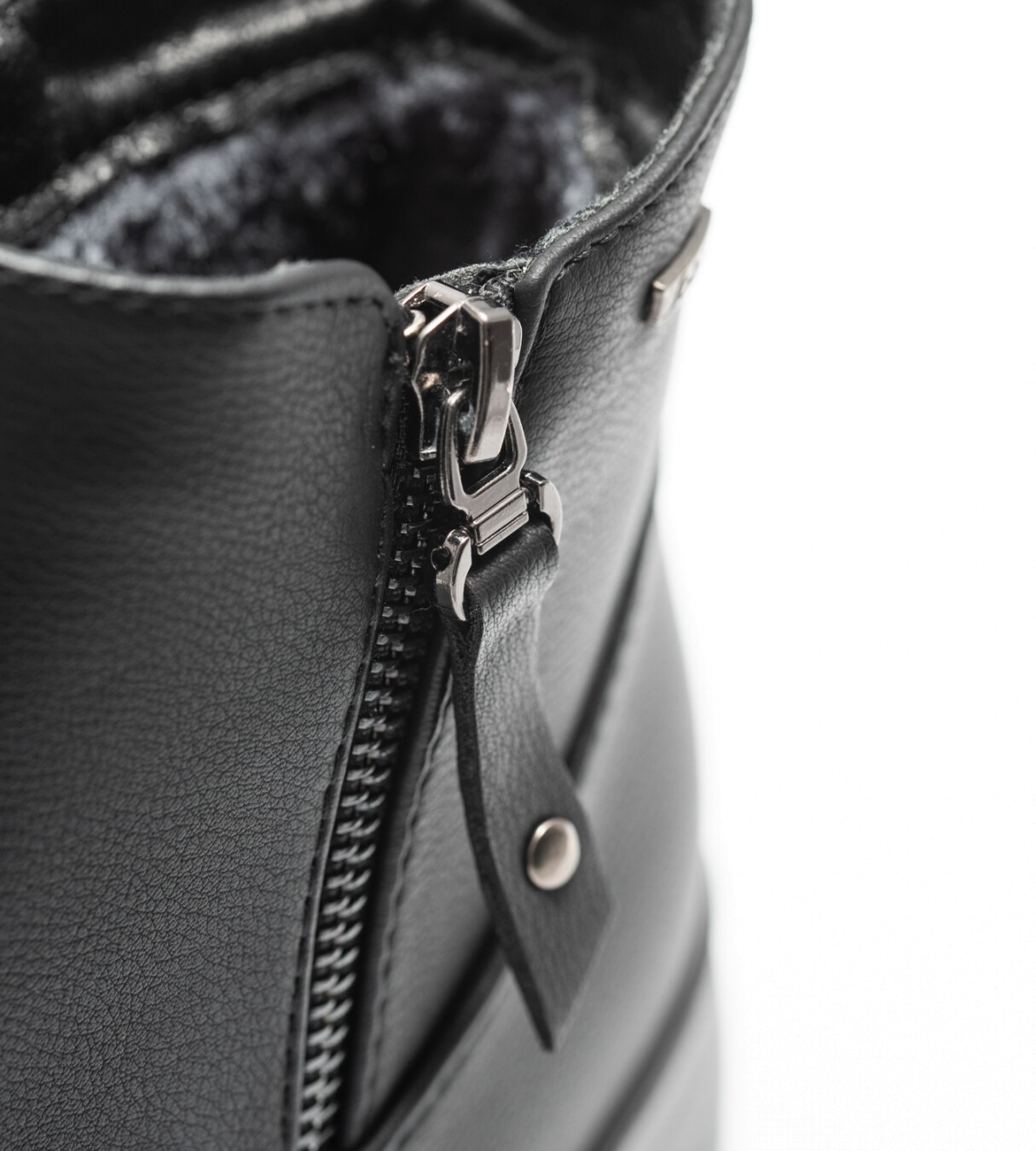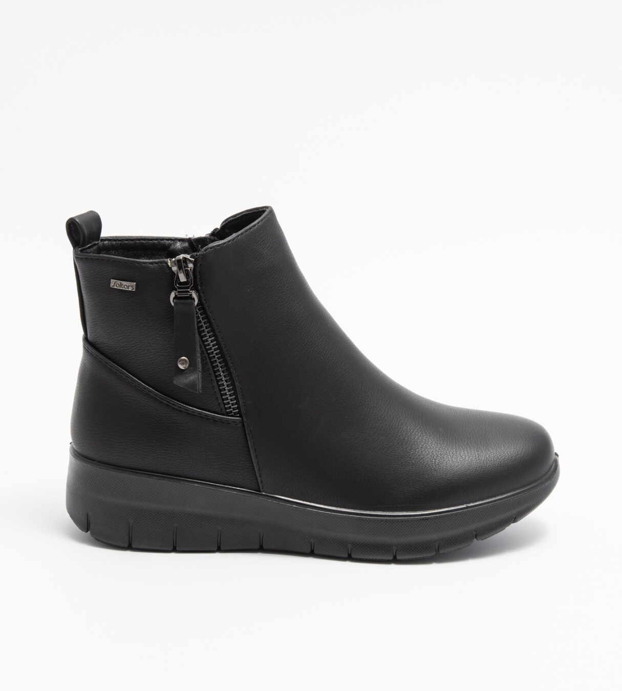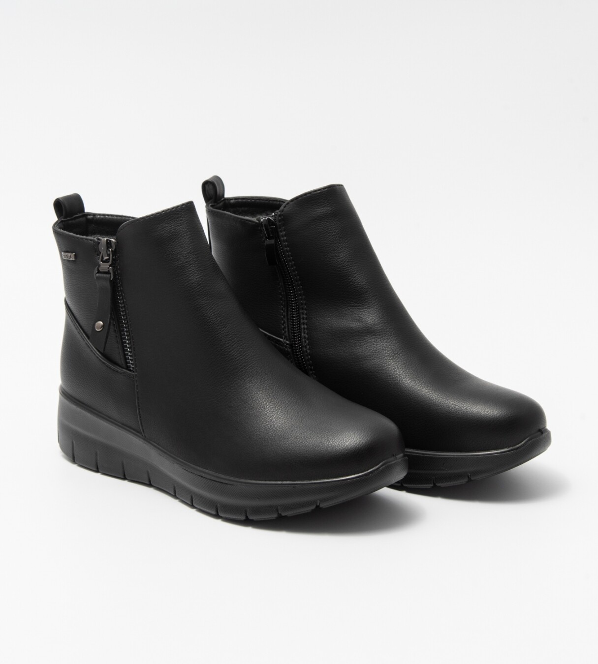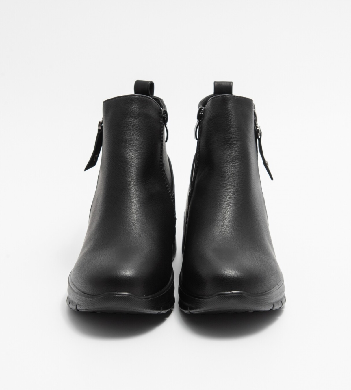 Bota-Botim preto da linha de conforto cardado por dentro. Contém um fecho na lateral interior.