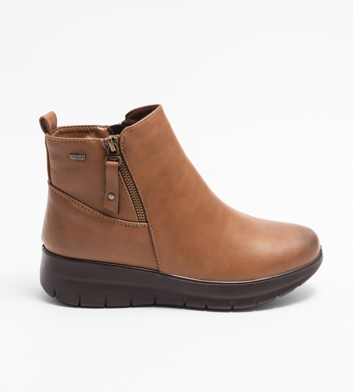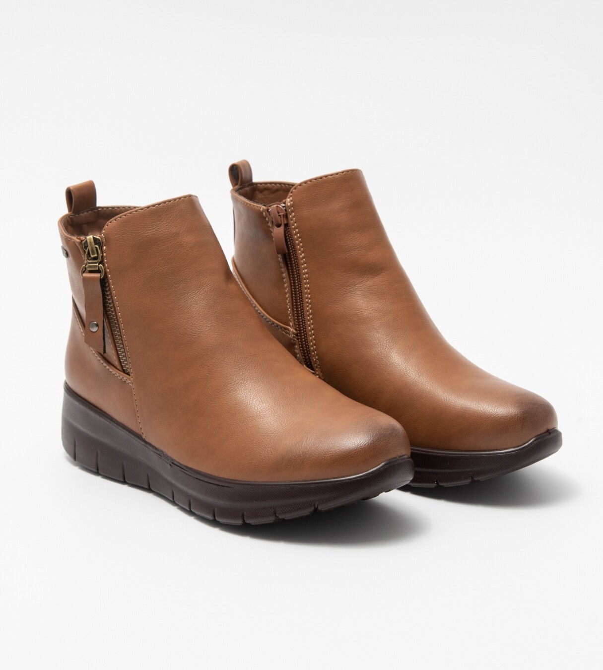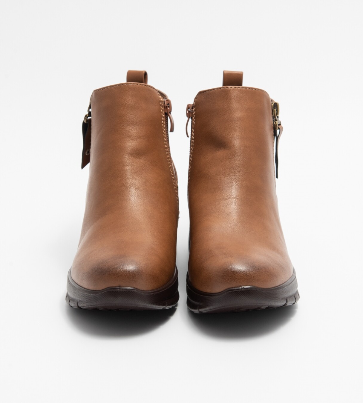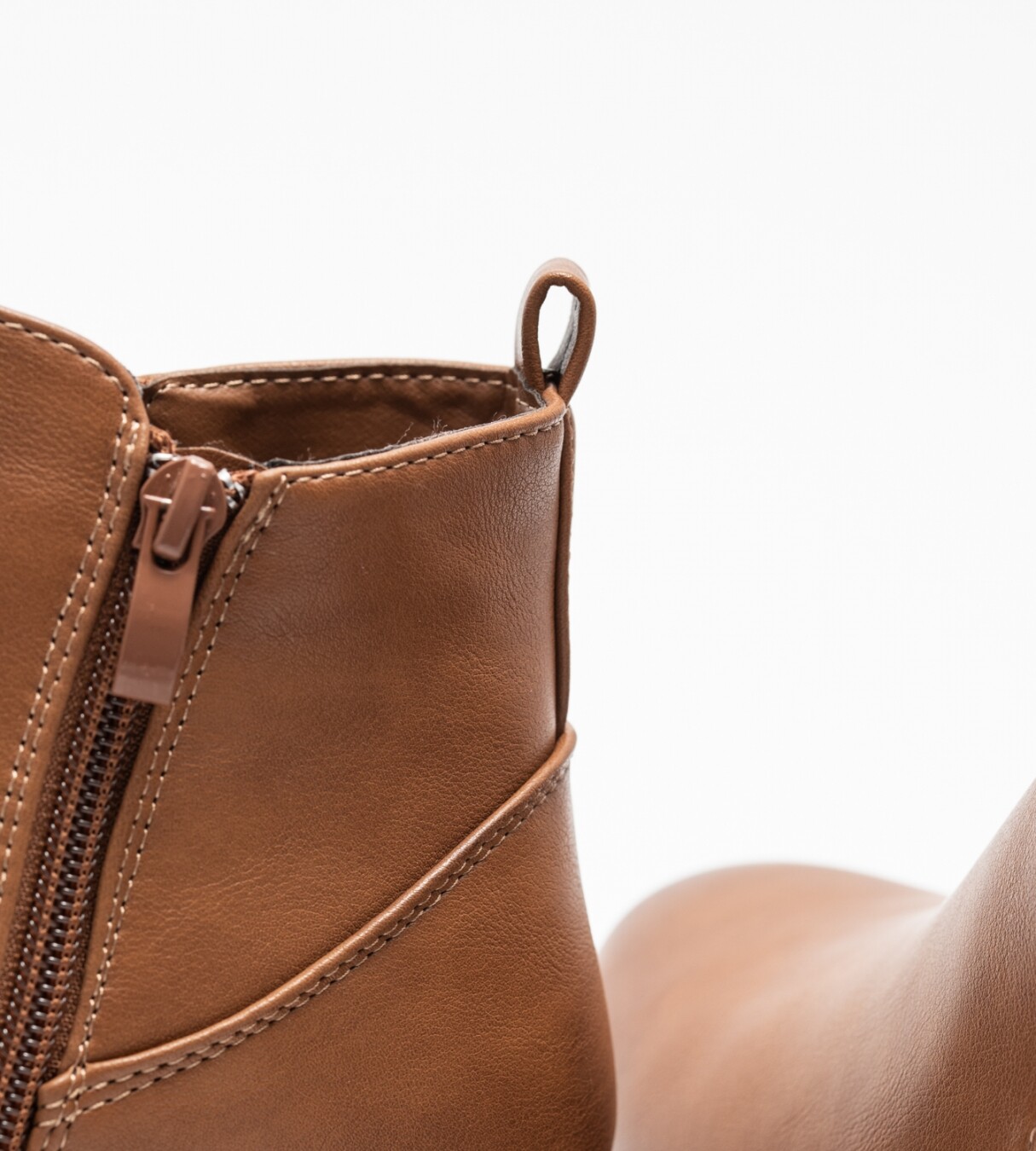 Bota-Botim camel da linha de conforto cardado por dentro. Contém um fecho na lateral interior.