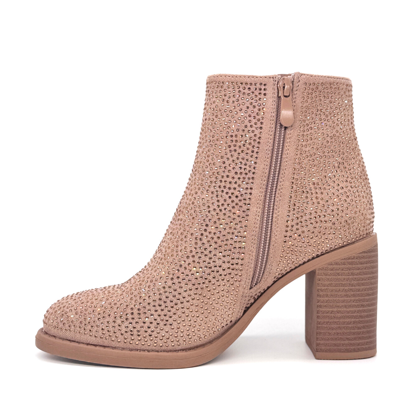 女士短靴,设计精致,饰有闪耀微粒,尽显优雅魅力。粗跟设计(8 cm)增强稳定性与舒适感,适合各种场合,无论是日常穿搭还是特别时刻,都能轻松驾驭。兼具时尚与实用性的理想之选。