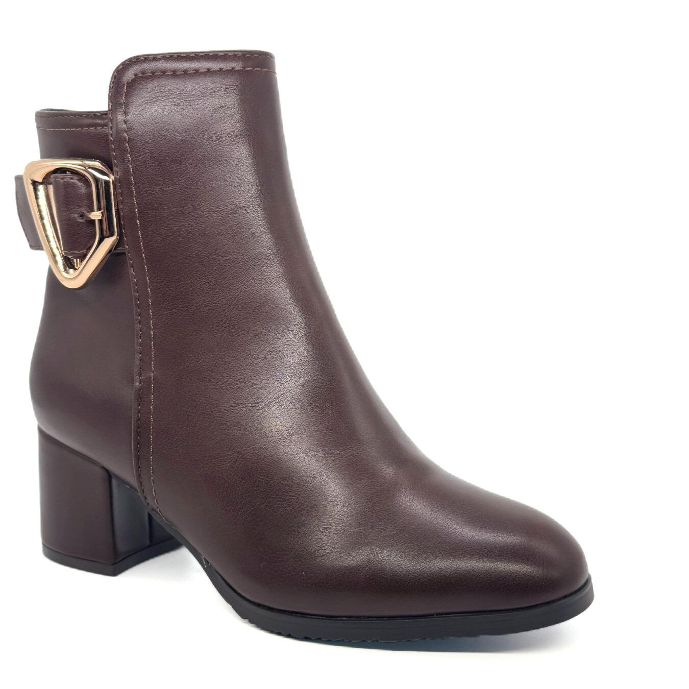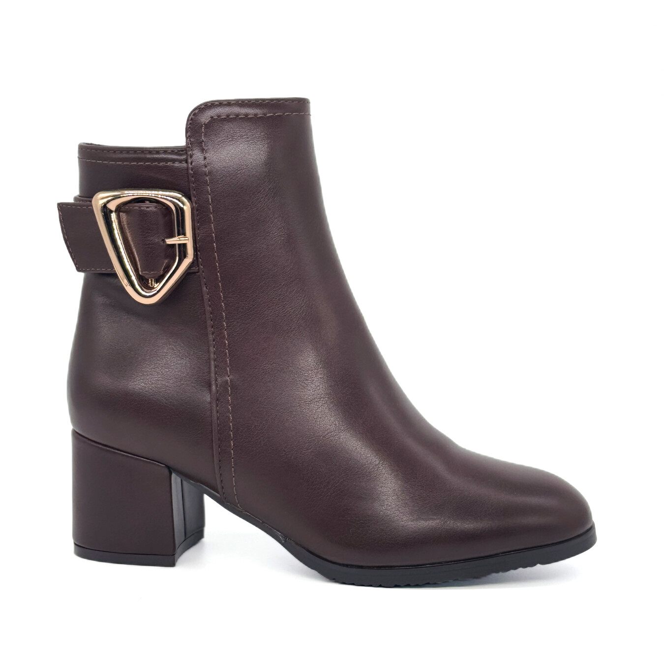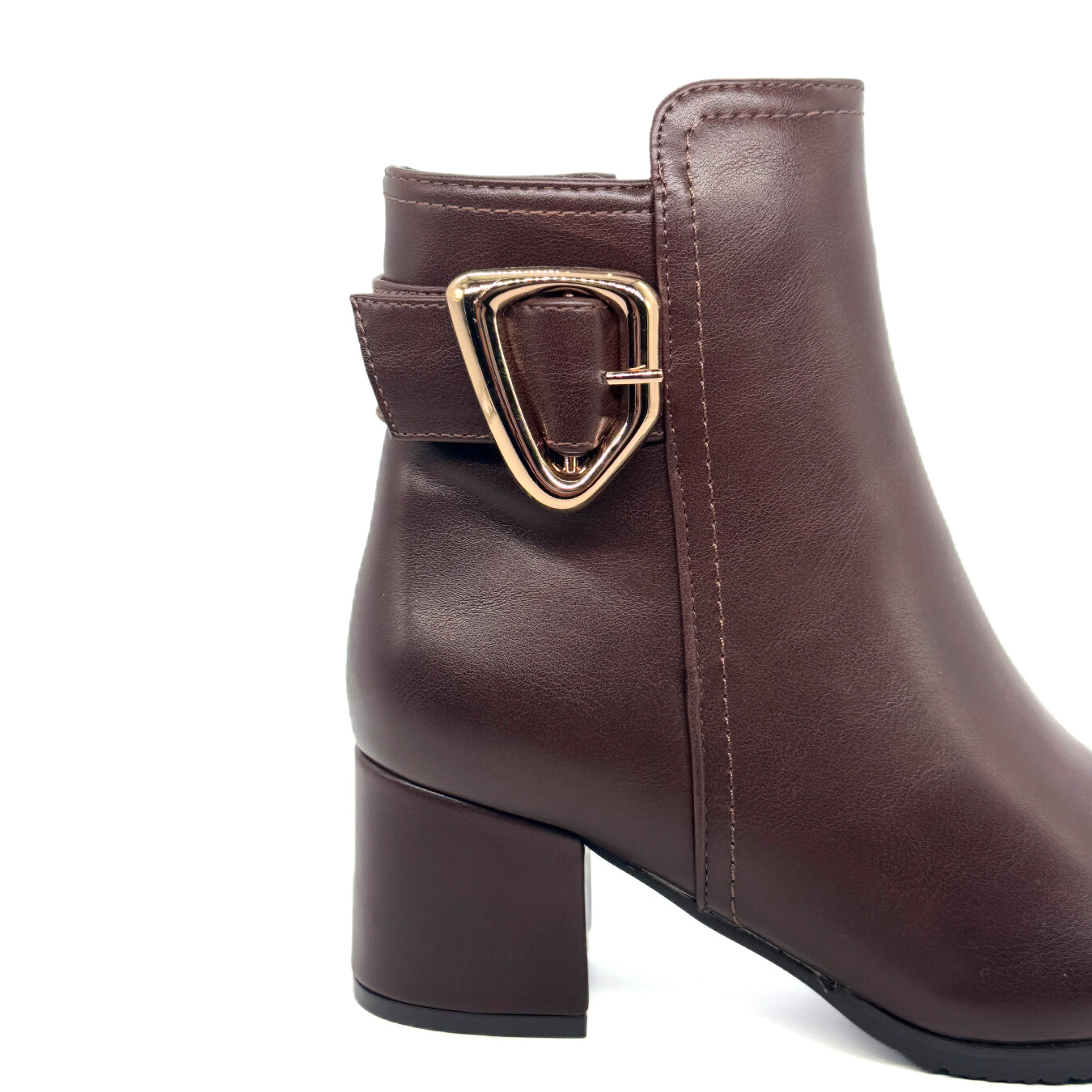 5厘米方根高跟靴,带有杏仁形鞋头和一枚扣子。