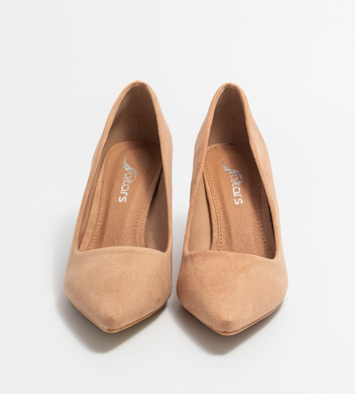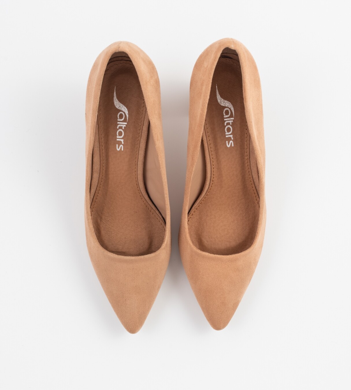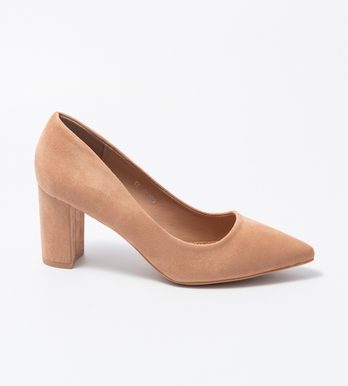Sapato de salto de 7 cm beige com palmilha almofadada. Contém linhas confortáveis para um bom andar.