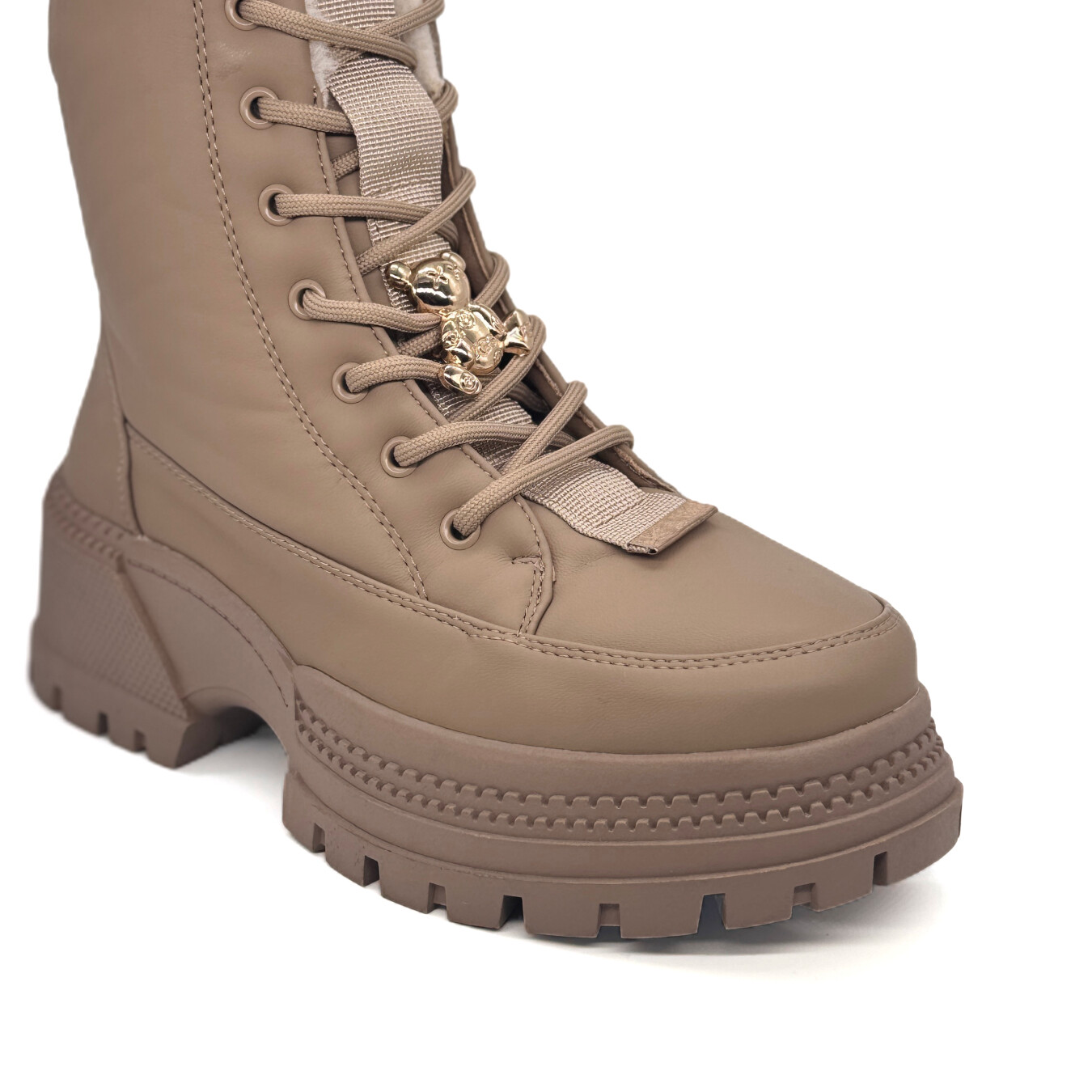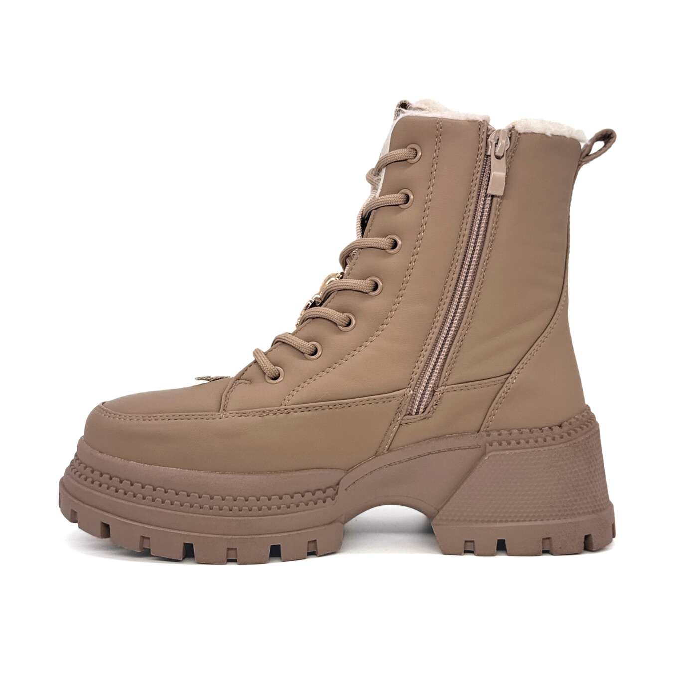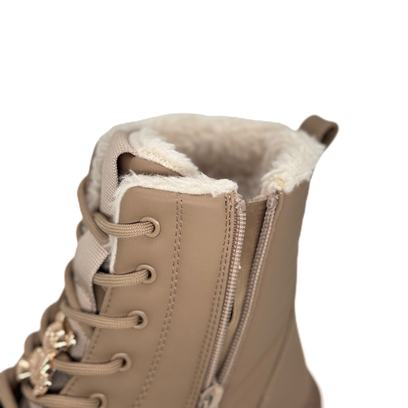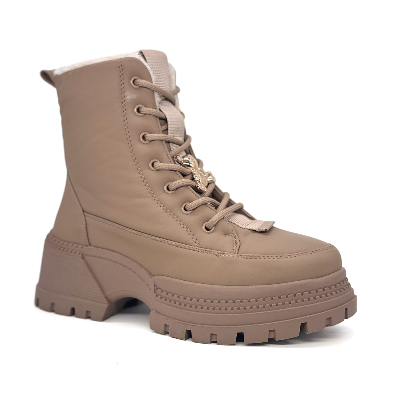 Bota feminina de estilo urbano, com cano médio e design robusto. O modelo possui solado tratorado espesso com salto bloco, proporcionando ótima tração e conforto ao caminhar. O fechamento é feito por cadarço frontal contendo também um fecho do lado interno, com detalhe decorativo metálico que adiciona um toque sofisticado ao visual. Conta com acolchoamento interno tipo pêlo, ideal para climas mais frios, garantindo aquecimento e bem-estar. Estrutura reforçada e acabamento fosco que complementam o estilo moderno e ousado da peça.