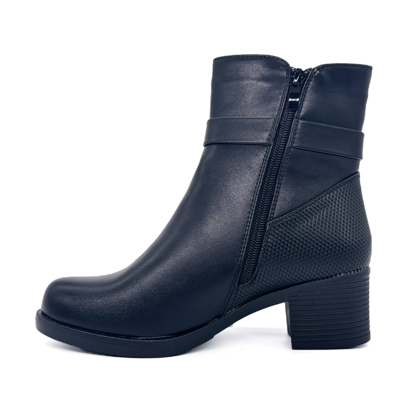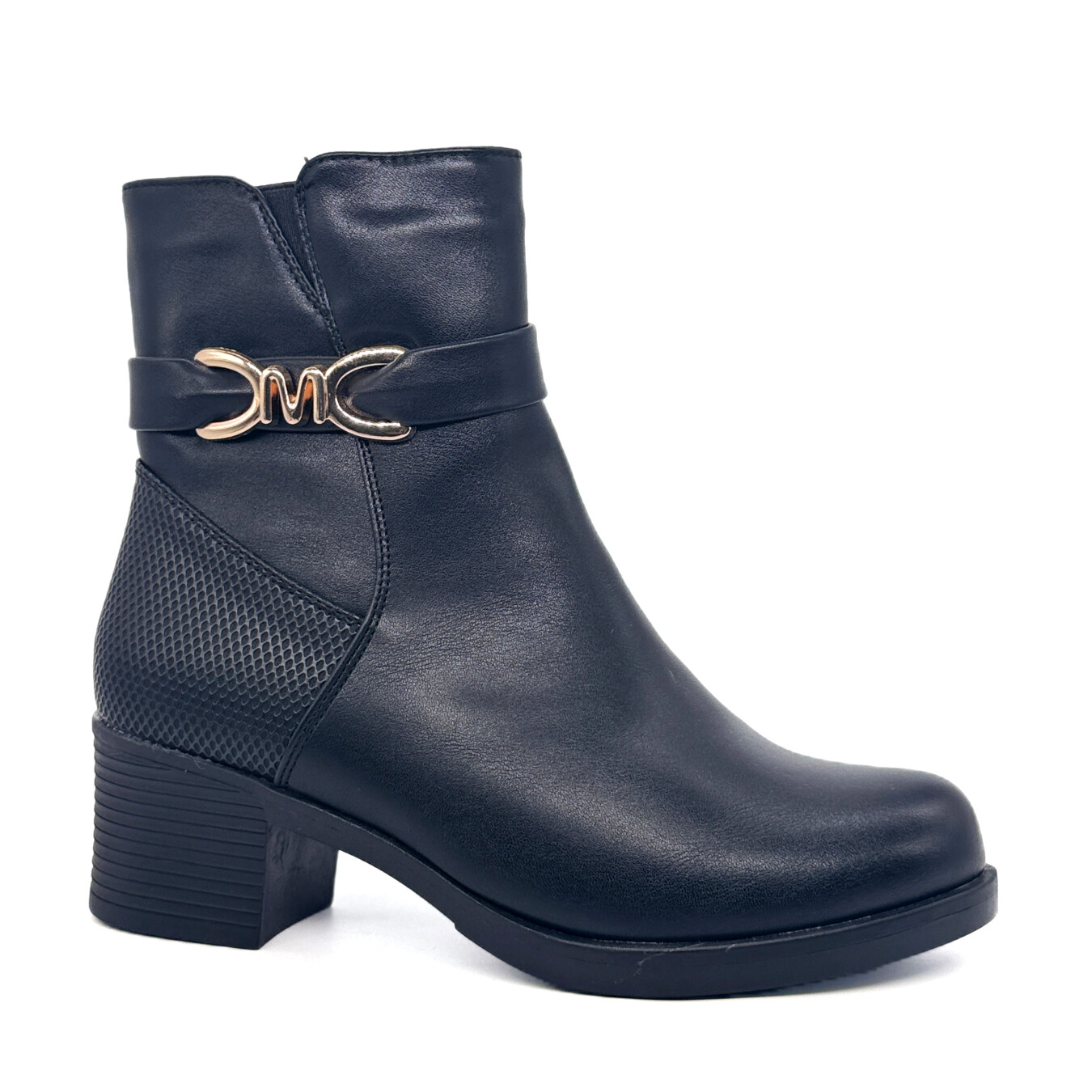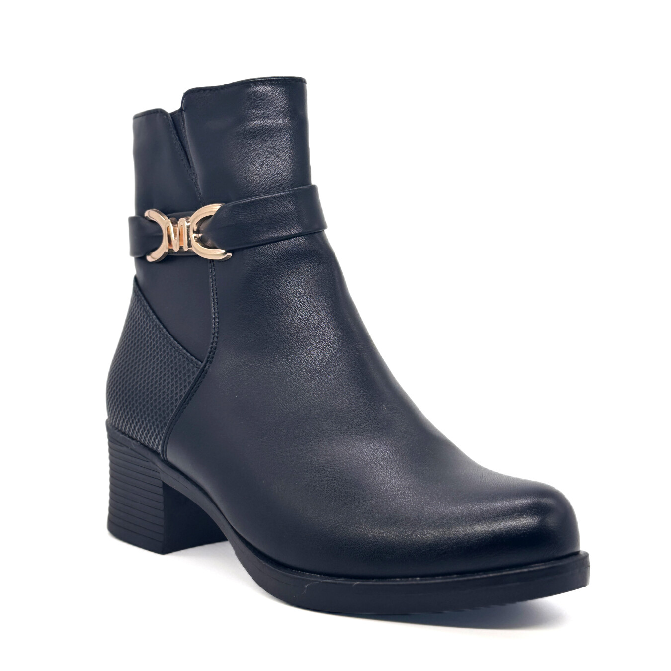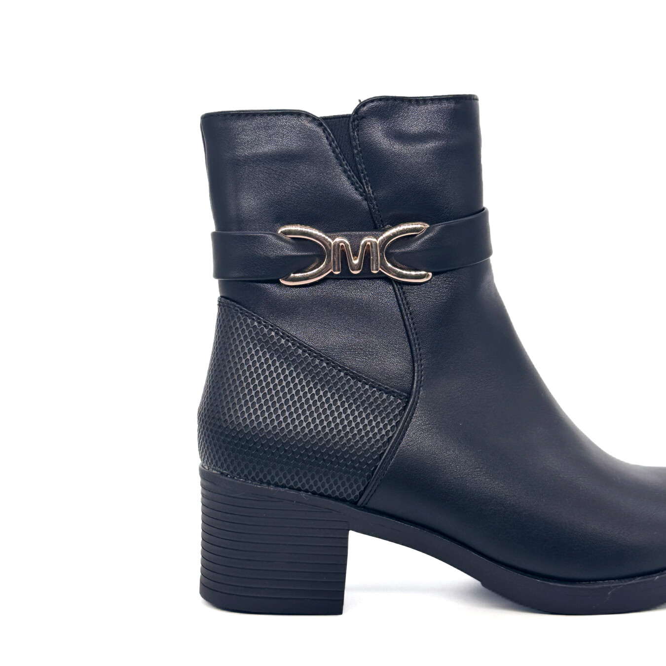 Bota feminina de cano curto com detalhe metálico no cabedal que agrega sofisticação ao visual. O modelo conta com salto baixo e design anatômico, proporcionando conforto e elegância no dia a dia. Ideal para quem busca praticidade sem abrir mão de estilo.
